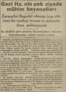Bunun üzerine ek işleyişin 26 Eylül 1930 tarihli Cumhuriyet gazetesinde yer aldığı gibi, diğer bazı İstanbul gazetelerinin Ankara’da bulunan başyazarları Atatürk’e şu soruyu yöneltirler: